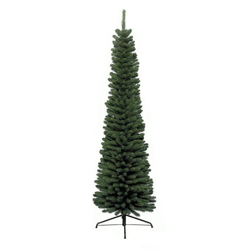 Albero Natalizio Pino Slim Verde, altezza cm. 240, Diametro cm. 70, composto da 748 Rami in PVC. Un albero dal piccolo diametro per chi ha problemi di spazio.