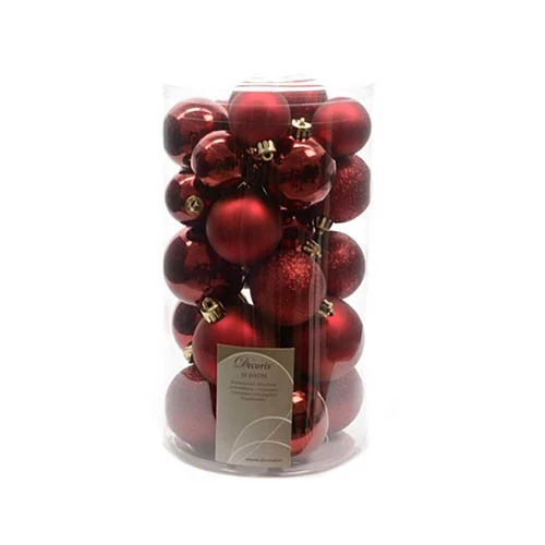 Box da 30 palline Natalizie in plastica colore Rosso Bordeaux, assortite come segue: