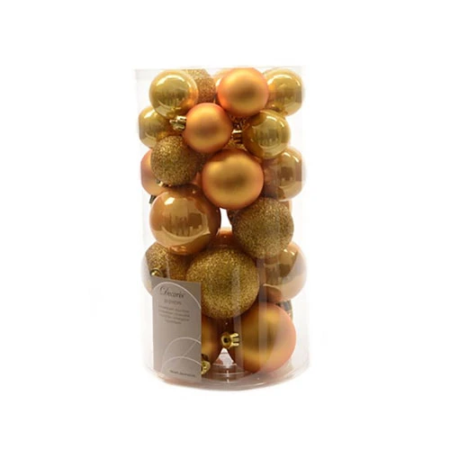 Box da 30 palline Natalizie in plastca colore oro intenso, assortite come segue: