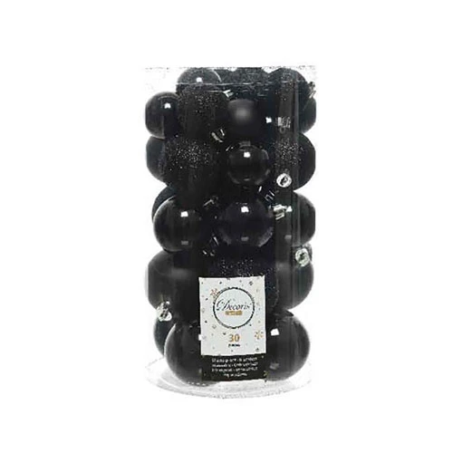 Box da 30 palline Natalizie in plastica colore Nero, assortite come segue: