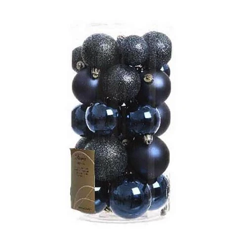 Box da 30 palline Natalizie in plastica nella tonalità Blu notte, assortite come segue: