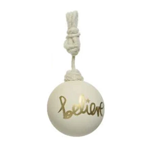 Pallina Natalizia in vetro bianco lana con scritta BELIVE oro, mm. 100.