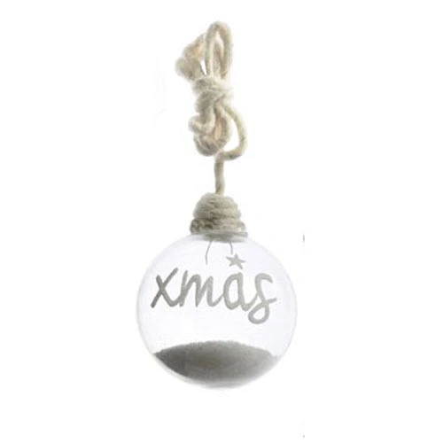 Pallina Natalizia in vetro con neve e scritta XMAS, mm. 100.
