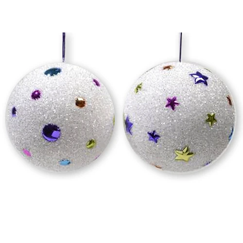 Sfera natalizia bianca innevata con perline colorate, mm 150
